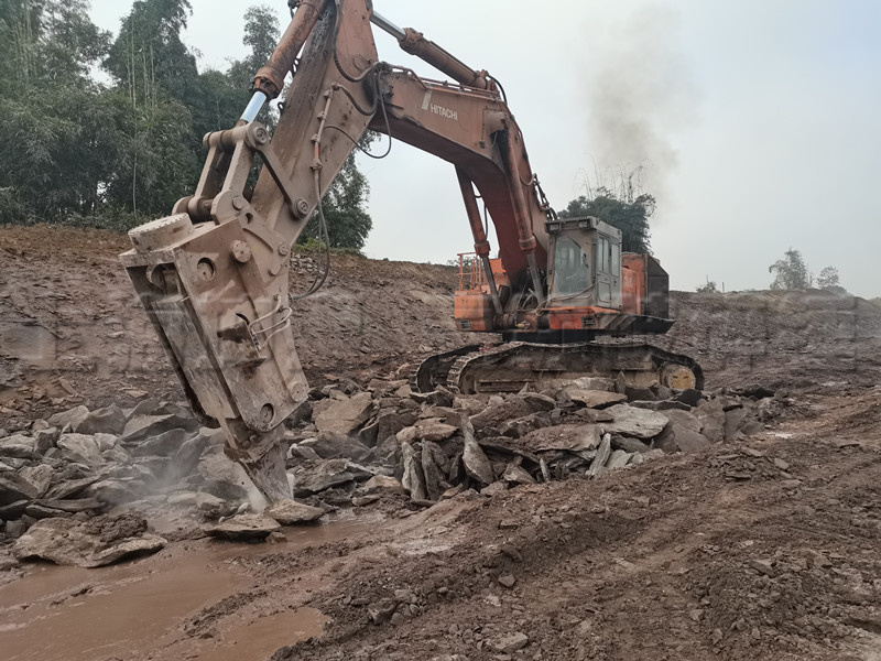 破碎錘此錘可配備50噸-100噸挖掘機使用??捎糜谟捕仍?5兆帕及以下石料的破碎施工。